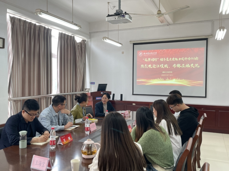 2023年5月11日上午,我院特邀会计学院团委书记汪瑾斌、学工部李赫老师来我院做主题分享。会议由通信工程学院党委副书记何雅丽主持,通信工程学院学工办全体辅导员参与了本次交流活动。