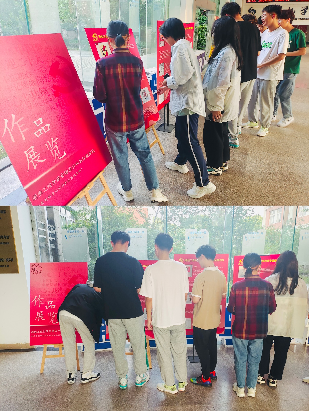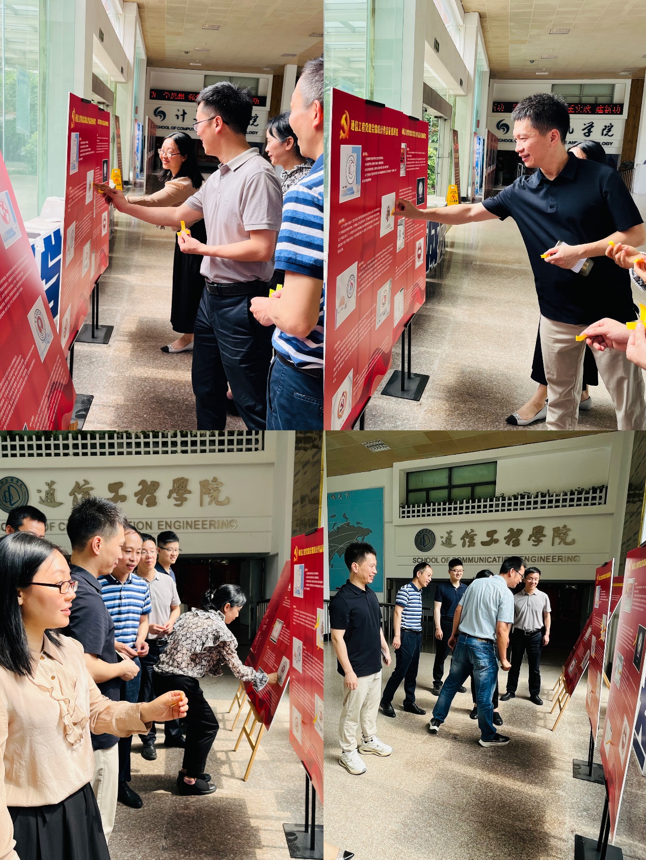 深入学习习近平新时代中国特色社会主义思想主题教育,贯彻落实党的二十大精神,践行立德树人根本任务,通信工程学院多措并举开展主题分享会、读书会、调研实践、作品征集活动等,大力促进和巩固学院“廉诚同信”廉政文化品牌宣传教育成果。5月29日至6月5日,由通信工程学院纪委主办,通信工程学院学生党建工作委员会承办的“廉诚同信”学生党建工作委员会会徽设计大赛作品展于1教一楼大厅展出。学院党委书记何宏携学院领导班子成员、行政教师和同学们一同参观作品展。