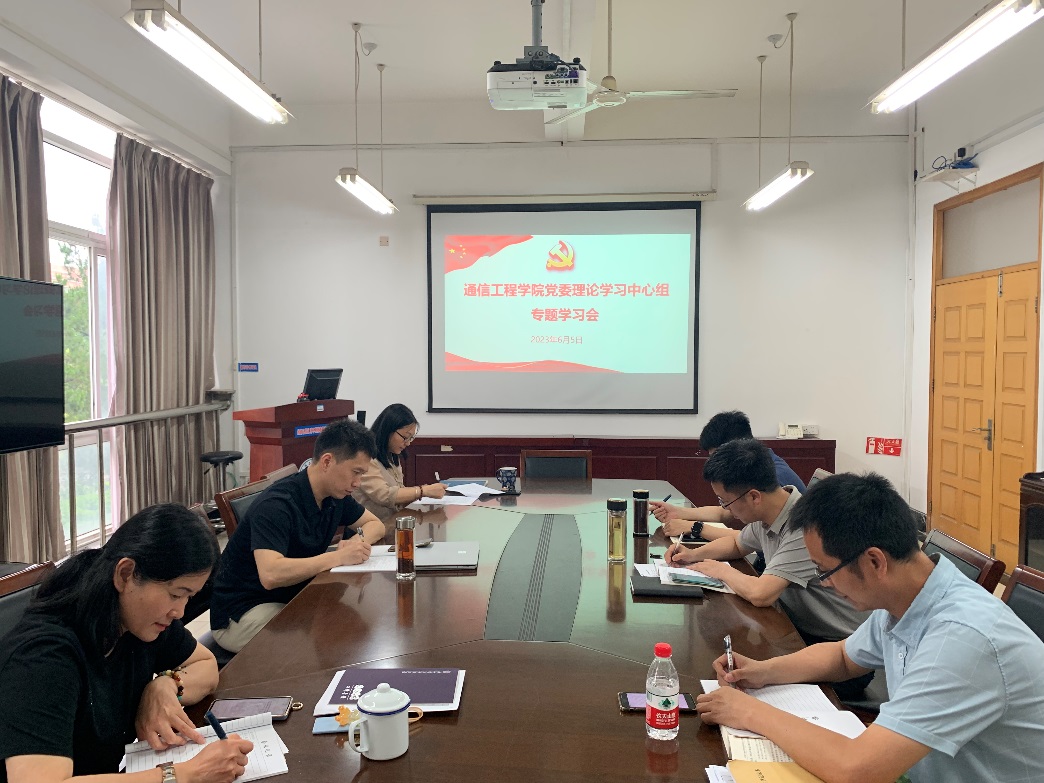 6月5日,通信工程学院党委理论学习中心组举行“习近平总书记关于建设教育强国重要讲话精神”专题学习会,党委理论学习中心组成员参加本次学习。