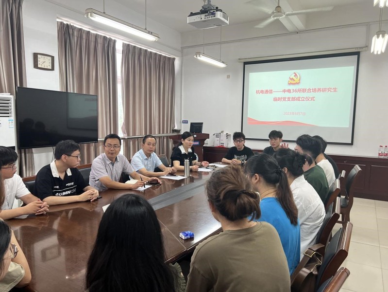 座谈会上学院党委副书记陈新峰对2022级联合培养学生即将前往中电36所开启研究生第二阶段学习的注意事项进行了介绍,并强调同学们要思想上保持积极上进,继续开展主题教育活动。接着陈书记宣读了学院党委《关于同意成立杭电通信—中电36所联合培养研究生临时党支部的批复》,并任命胡嘉成同志为临时党支部书记,陈张瑜同志为支部组织委员,郝小凤同志为支部宣传委员。他强调,这是学院首次以班级为单位派驻学生去往联合培养基地,希望支部各党员充分发挥党员先锋模范带头作用,与石镜仟亦等班级骨干一同,做好前后桥梁纽带,共筑班级战斗堡垒。