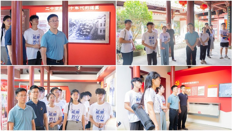 会后,杭电通信学院与大柘小学携手联动开展红色追忆主题教育活动,杭电“砥丽黔行”支教团前往校红色史墙学习大柘小学的红色历史,从“寒冬星火”到“古庙前的琴声”,九个红色小故事充分展现了“忠诚使命,求是挺进,植根人民”的浙西南革命精神。随后,支教团队集体参观遂昌革命纪念馆泉湖寺旧址,这里是浙西南第一个中共组织——中共遂昌支部诞生地,遂昌还是浙西南第一个中共县委成立所在地,在这里创立了浙西南第一支革命武装,打响了浙西南武装斗争的第一枪,师生一行人在生动讲解中,追忆红色革命历史,传承勇做先锋的精神。参观过程中,何宏书记指出了传承红色基因,延续红色血脉的重要性,鼓励同学们在支教的同时也要提升思想境界,不忘初心,牢记使命!