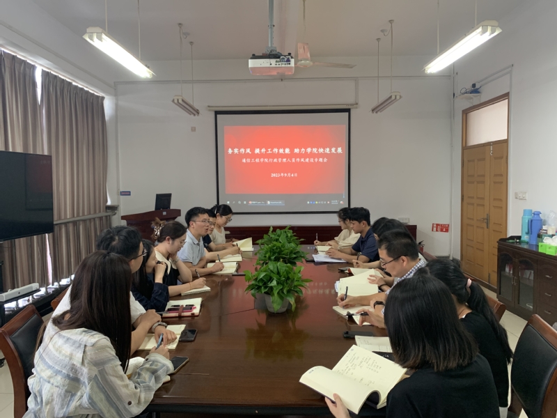 为落实主题教育问题整改,加强作风建设,9月4日,通信工程学院召开“务实作风 提升工作效能 助力学院快速发展”行政管理人员作风建设专题会。会议由院党委书记何宏主持,学院全体行政管理人员参加会议。