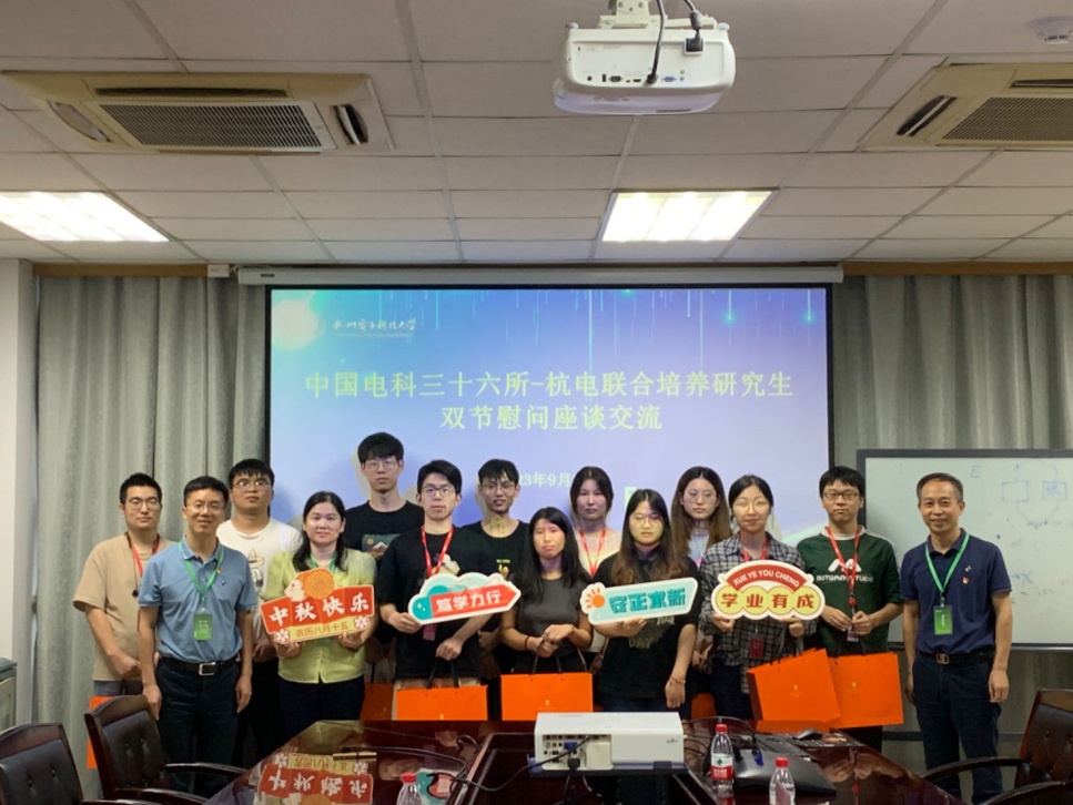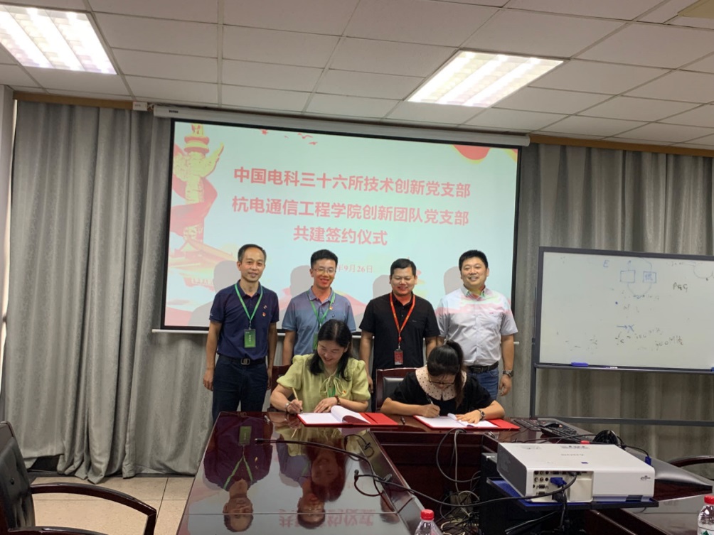 为贯彻落实习近平总书记关于实现科技自立自强、培养卓越工程人才的重要指示精神,构建“互促互助、优势互补、共谋发展”的党建合作新格局,9月26日,通信工程学院党委书记何宏、副院长孙闽红、创新团队党支部书记周雪芳赴中国电科三十六所,与技术创新党支部举行支部共建仪式,并一同看望慰问联合培养研究生。三十六所组织人事部主任顾俊杰、党建工作部主任殷建良、技术创新部主任王巍、技术创新党支部书记李焕及组织人事部主任助理张德华、导师代表张琦、全体联培研究生出席活动。
