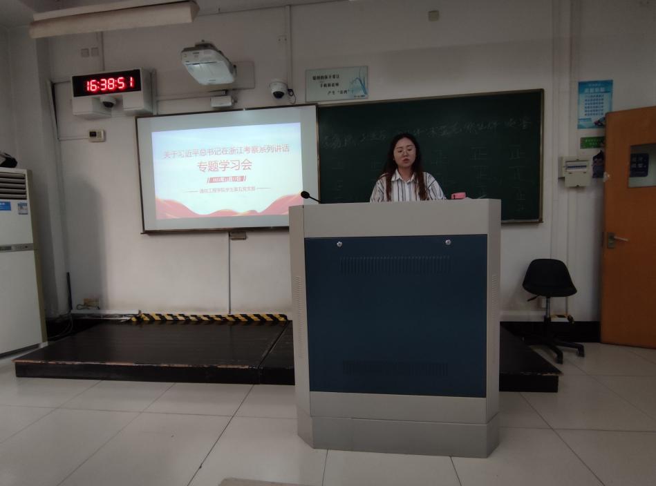 会议由通信工程学院第五党支部书记李鑫瑶主持,会议强调了总书记在浙江考察时的精神,指出浙江发展要完整准确全面贯彻新发展理念,围绕构建新发展格局、推动高质量发展,聚焦建设共同富裕示范区、打造新时代全面展示中国特色社会主义制度优越性的重要窗口,坚持一张蓝图绘到底,持续推动“八八战略”走深走实,始终干在实处、走在前列、勇立潮头,奋力谱写中国式现代化浙江新篇章。