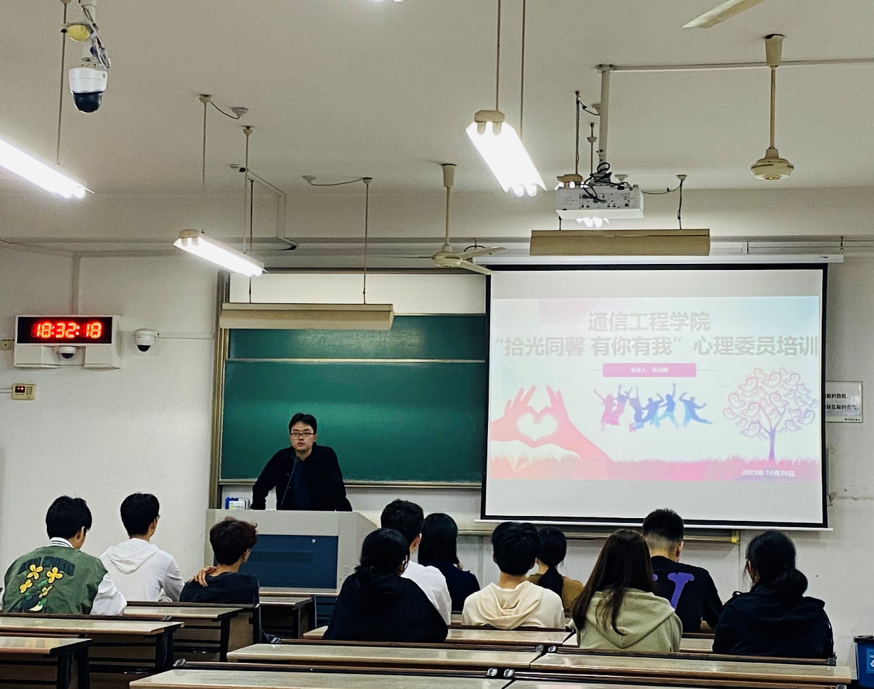 为加强学生心理健康教育水平,培养学生健康的心理状态,帮助学生了解心理预警机制,结合学院“拾光同馨”学工文化心理育人理念机制,10月29日晚,通信工程学院心理站开展“拾光同馨 有你有我”主题的心理委员培训会,心理站站长、辅导员吴马超老师担任本次培训会主讲,对学院全体心理委员进行培训。