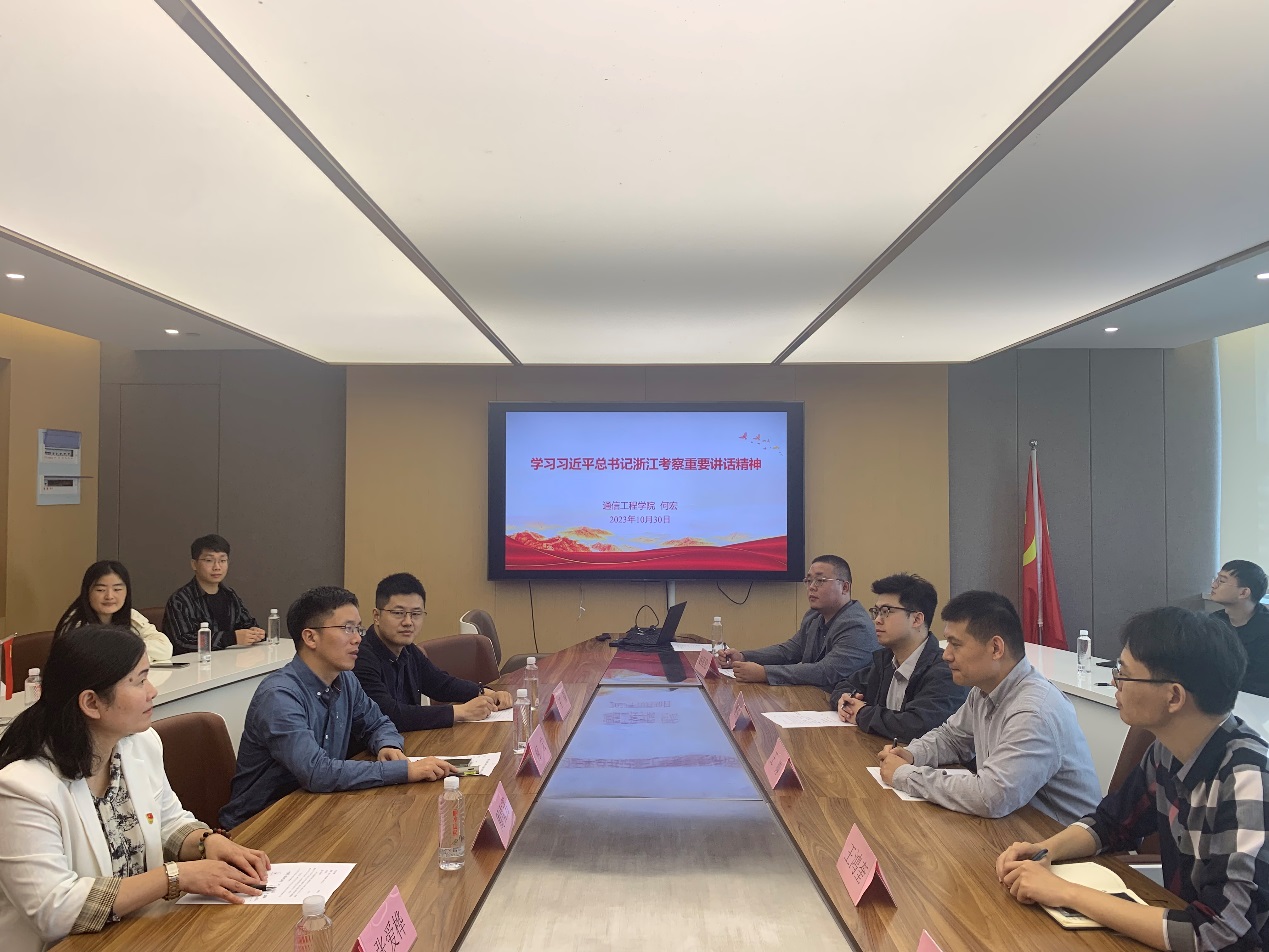 会议开展通信工程学院与丽水研究院党建联学活动,何宏带领大家专题学习“习近平总书记浙江考察重要讲话精神”。通过对习近平总书记浙江考察讲话精神、习近平总书记在丽水考察调研指示精神的学习,大家一致表示要积极发挥地方研究院作用,科技赋能助力共同富裕示范区建设,奋力谱写中国式现代化浙江新篇章。