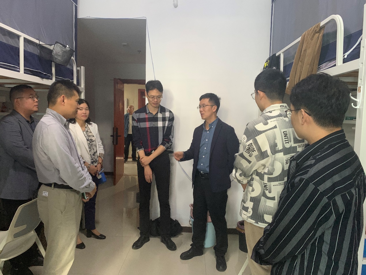在王帅等老师的陪同下,学院领导看望慰问在研究院学习工作的研究生。何宏仔细查看了学生的住宿生活环境,亲切询问学生学习生活情况和存在的困难,叮嘱同学们要好好利用研究院的平台、学术资源和实践机会,积极参与学术研究和学科交流,不断提升自己的学术素养和综合能力。