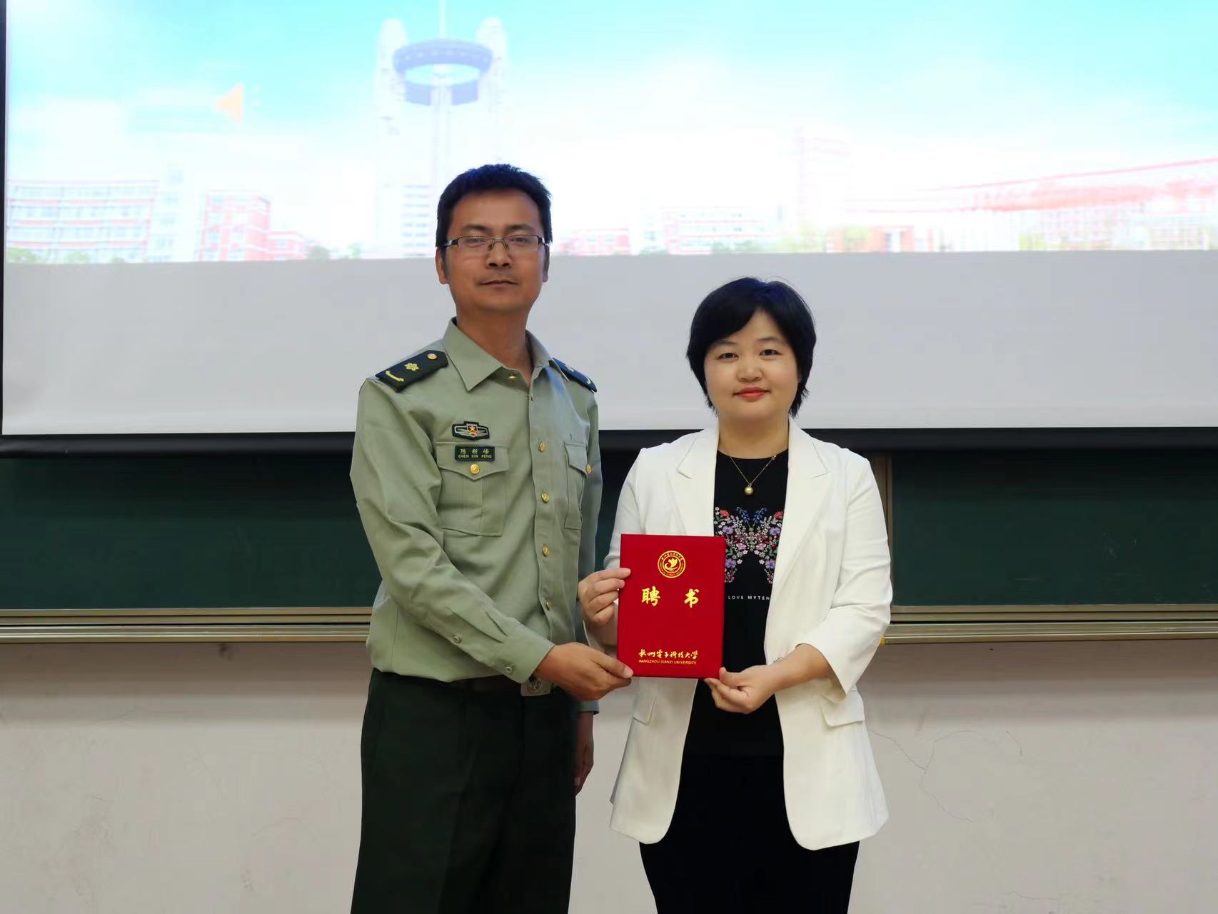 舒立琼被聘为通信工程学院2023级本科生8班课外导师,通信工程学院党委副书记陈新峰颁发聘任证书。