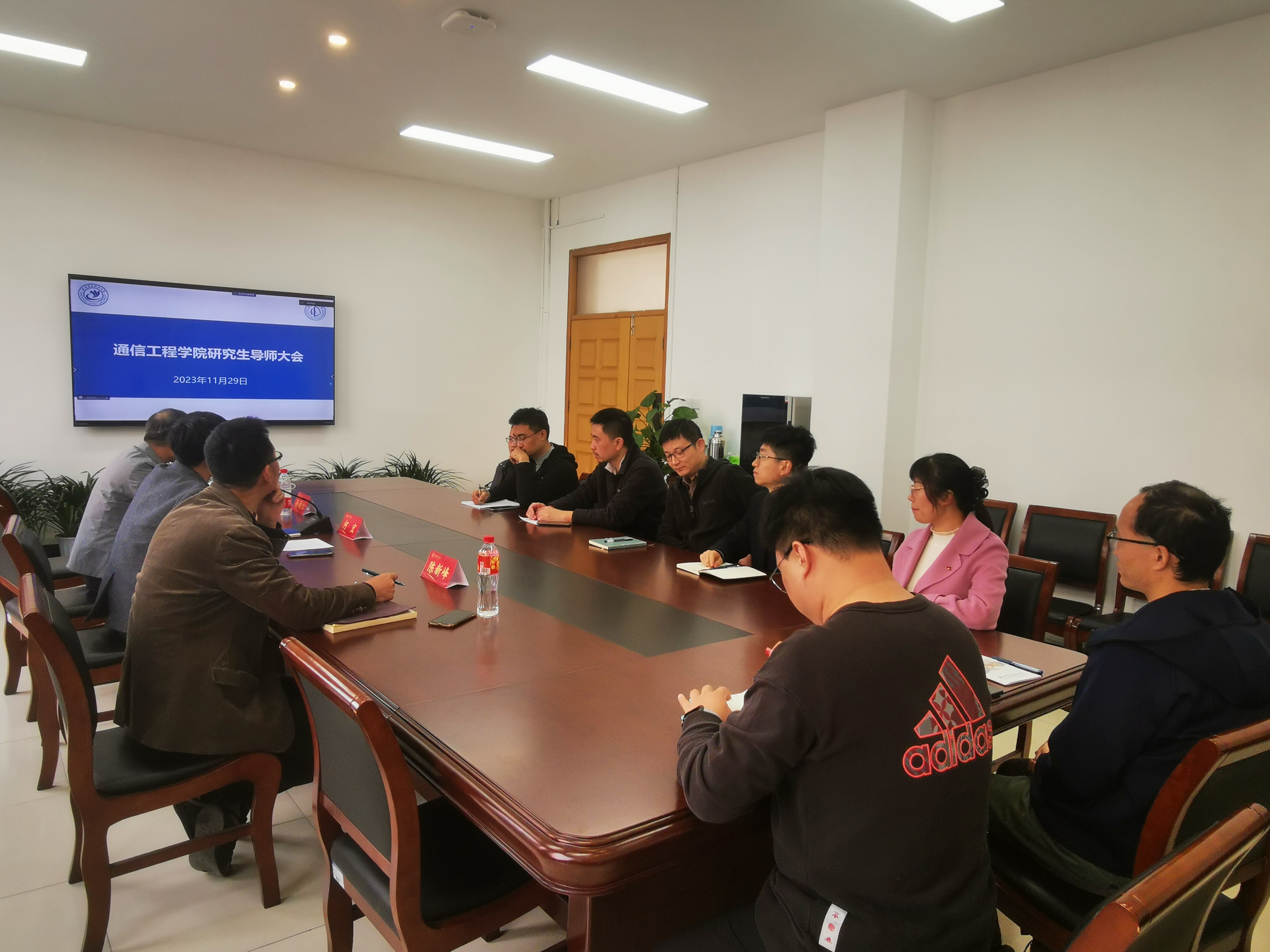 为进一步落实立德树人根本任务,加强师风师德建设,打造一支过硬的研究生导师队伍,更好地发挥导师的指导和引领作用,培养德才兼备的高素质人才,推进学院研究生工作高质量发展,2023年11月29日下午,通信工程学院召开全体研究生导师大会,学院党委书记何宏、副院长孙闽红、党委副书记陈新峰及全体研究生导师出席了本次会议。会议采用线上线下结合方式,由学院副院长孙闽红主持。