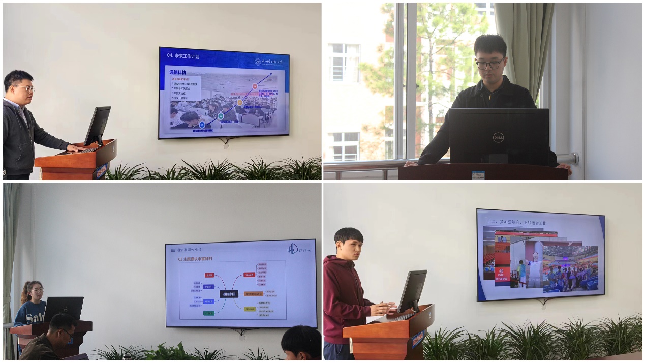 会上每位辅导员就自己学生工作和模块工作进行总结分享。王琛从本我、大我、小我、超我四个层次,分别对学生工作、参与亚运、个人成长以及学工发展思路凝练进行总结。孙雨萌重点对今年的研究生就业工作进行总结,并对下一年的就业工作规划部署。徐君仪就2023年党建、团学、奖学金、亚运等工作进行总结,生动形象展现了一名通信学工人砥砺前行,不忘初心的育人追求。黄笑眉从辅导员、党支部书记、团委书记几个身份总结2023年工作的成就与反思。