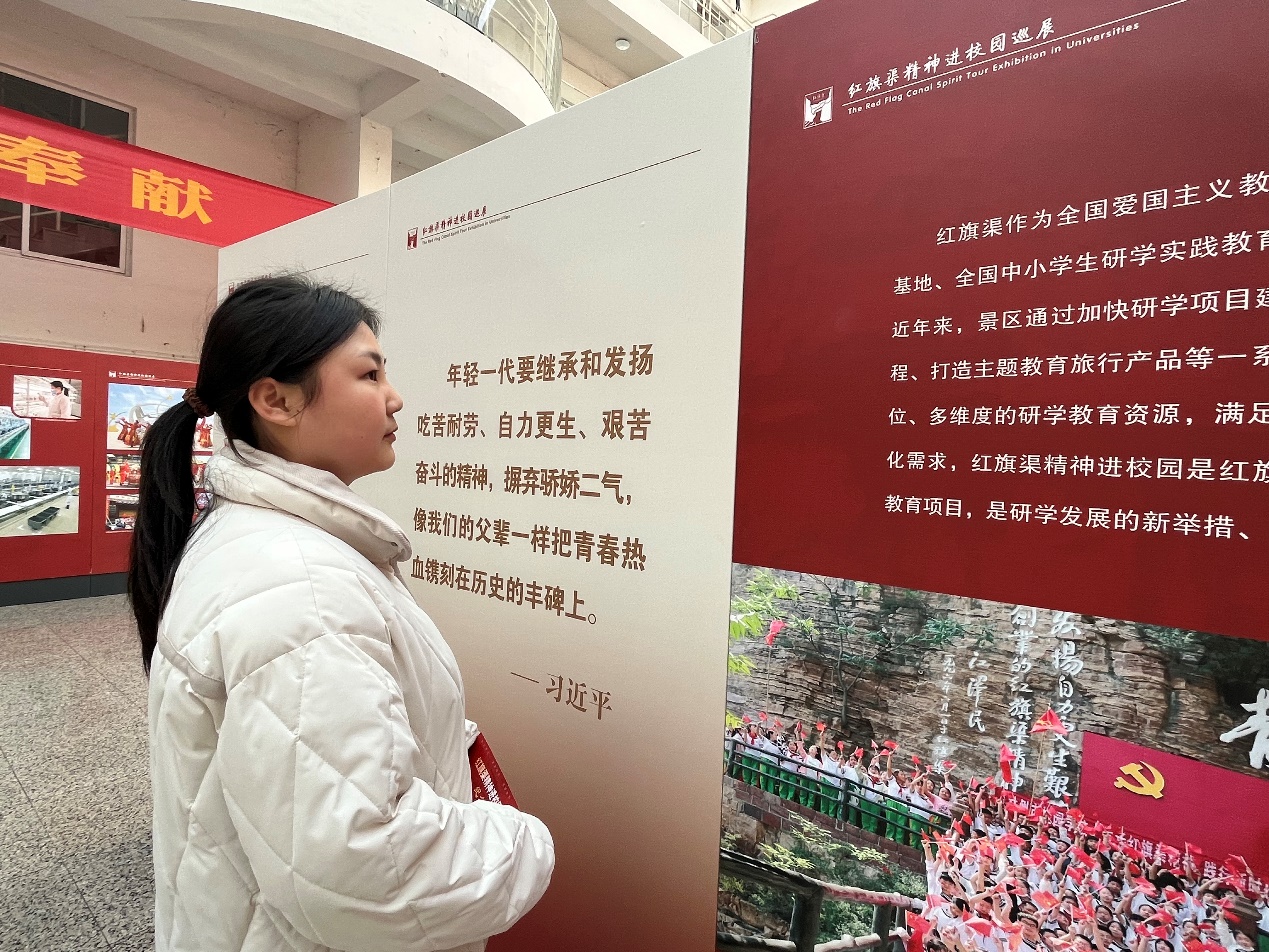王瀚麒:红旗渠是新中国发展的一个缩影,生长在幸福年代的我们没有经历过艰苦卓绝的时代,看了今天的展览,我真切领悟到“幸福是奋斗出来的”,如果没有先辈们的艰苦奋斗,就没有当前国家的发展和我们的幸福生活。作为一名新时代青年,我会夯实专业基础,提升专业技能,将个人发展置于通信行业发展的大潮流中,与社会进步乃至国家发展同频共振。