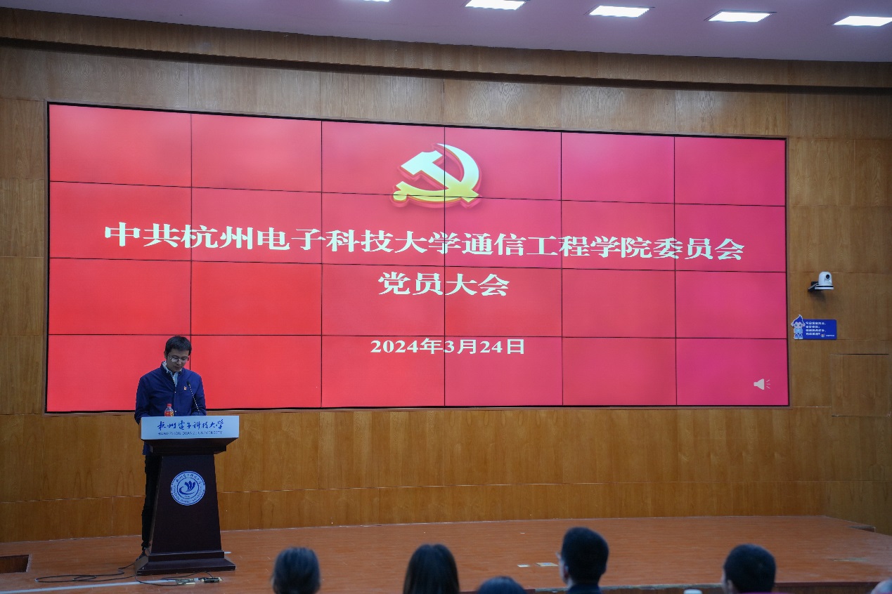 3月24日上午,中共杭州电子科技大学通信工程学院委员会在7教127召开党员大会,选举产生通信工程学院党委出席中共杭州电子科技大学第四次党员代表大会代表。学院党委书记何宏、党委副书记陈新峰、副院长孙闽红、应娜,党委委员周雪芳、姚英彪等学院337名师生党员参加会议,大会由陈新峰主持。