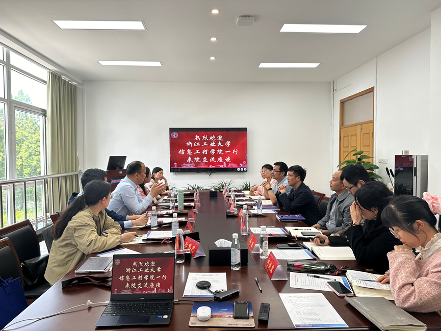 4月24日下午,浙江工业大学信息工程学院戴光麟一行来到杭电通信工程学院调研,双方围绕学院党建、科研工作、人才培养、队伍建设等方面开展交流与讨论。