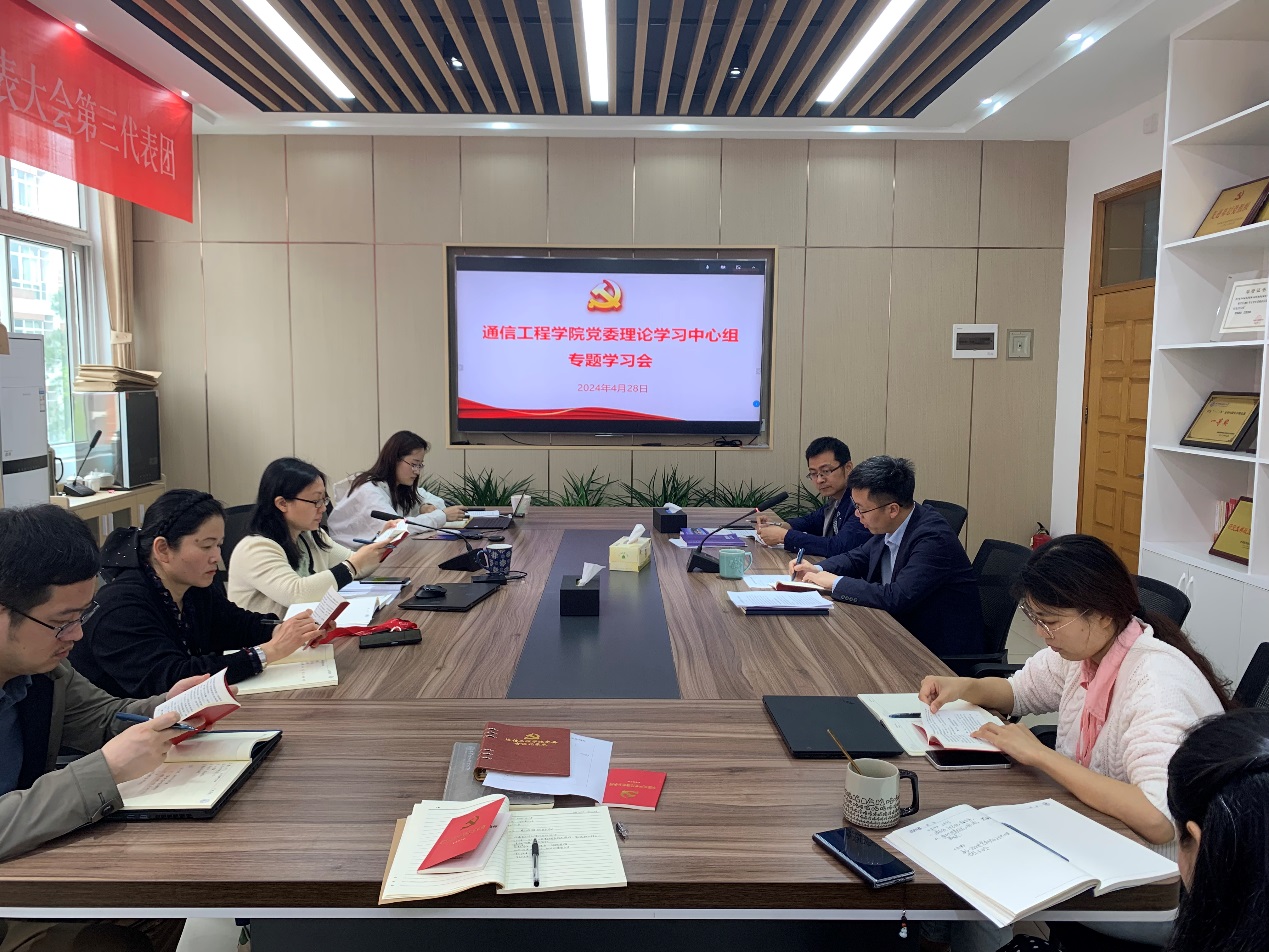 4月28日上午,通信工程学院党委理论学习中心组举行专题学习会,专题学习习近平总书记关于意识形态工作的重要论述和中国共产党党纪处分条例。学院党委书记何宏主持会议并领学,理论学习中心组成员参加会议。