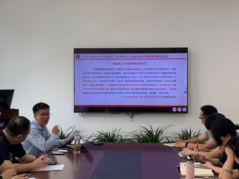 何宏带领大家深入学习习近平总书记关于纪律建设的重要论述,“寻迹溯源学思想促践行”学习习近平总书记在浙江工作期间关于加强党的纪律建设的重要论述,全面阐述了新时代纪律建设的精神实质,解读条例的修订内容,要求广大党员时时对标、处处对表,贯彻落实到党纪学习教育的全过程全方面。