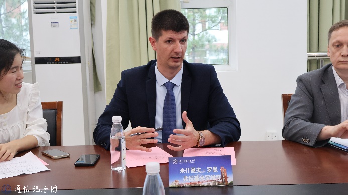 随后,双方进行了座谈交流。会上,学院党委书记何宏代表学院对俄罗斯专家团来访表示欢迎。院长助理江劭玮向俄方专家介绍了学院的国际合作规划,教师代表黄星儒、董续东、李宇渊等分别汇报了各自的研究方向与科研进展。俄方专家对我院的热情接待表示感谢,并分别就科研合作、国际交流、实验教学等方面提出了合作意向。