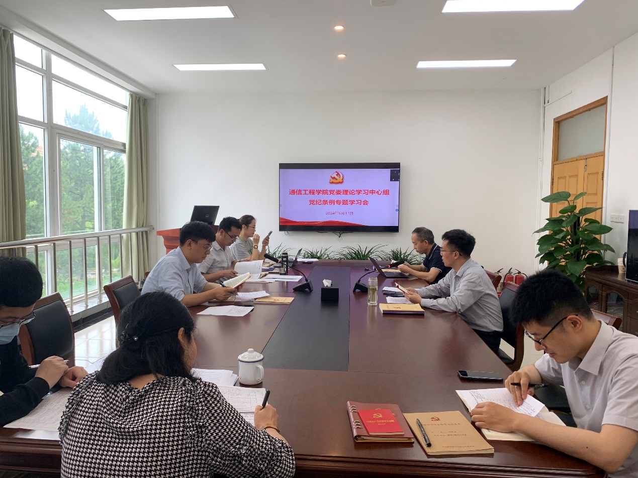6月11日上午,通信工程学院党委理论学习中心组举行党纪条例专题学习会,学院党委书记何宏主持会议,理论学习中心组成员参加会议。会议对党纪条例进行了学习,与会成员轮流领读,保证原原本本学条例。学习后,班子成员进行专题研讨并交流发言。