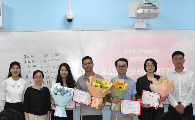 6月18日下午,通信工程学院诺基亚企业教师聘任仪式于七教南219教室举行。诺基亚杭州研发中心副总经理陈颖,高级工程师钟侃、唐杰、徐赞,杭州电子科技大学教务处副处长应娜、通信工程学院副院长(主持工作)胡淼出席仪式,通信工程学院院长助理翟彦蓉主持会议。会上陈颖对校企双方共建课程实施过程进行了总结,应娜和胡淼分别向6位诺基亚资深专家颁发企业教师聘任证书。