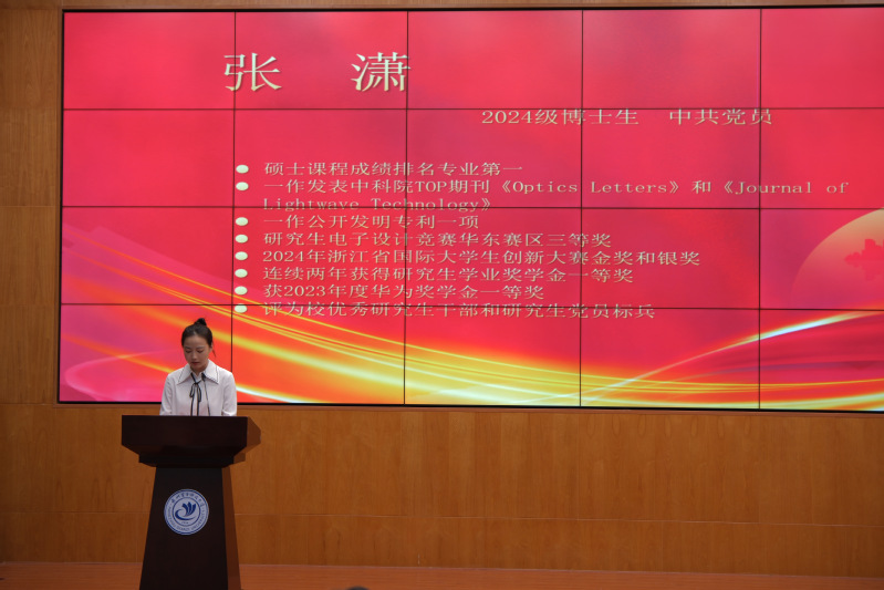 博士生新生代表张潇和研究生新生代表阮政杰分别和大家分享了研究生与本科生的经历,并鼓励大家多交流,携手共进,提升学术能力。