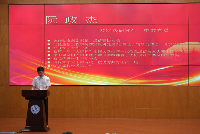 胡淼向大家介绍了通信工程学院的发展现况。他鼓励新生们在未来科研的道路上,加强与导师的有效沟通与及时汇报,要坚持笃学力行,以热爱开启研究之路,要坚持交叉融合,以创新深耕研究之路,要坚持底线思维,以诚信续航研究之路。他最后强调,在学院培养与自身努力下,新生定能在学术道路上取得佳绩,为学院和国家的科技进步贡献力量。