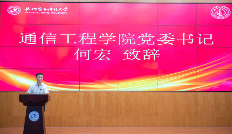 典礼上,何宏首先致辞,热烈欢迎新生加入杭电通信大家庭,并对他们的未来寄予厚望。他强调,新时代科研人要兼具家国情怀、国际视野与创新精神,他对新生提出了殷切期盼,希望新生们能做到三点,一要明礼诚信,温润谦和,享受青春不负韶华;二要日积跬步,奋楫笃行,挥洒汗水不负理想;三要引领时代,担当使命,踔厉奋发不负家国。