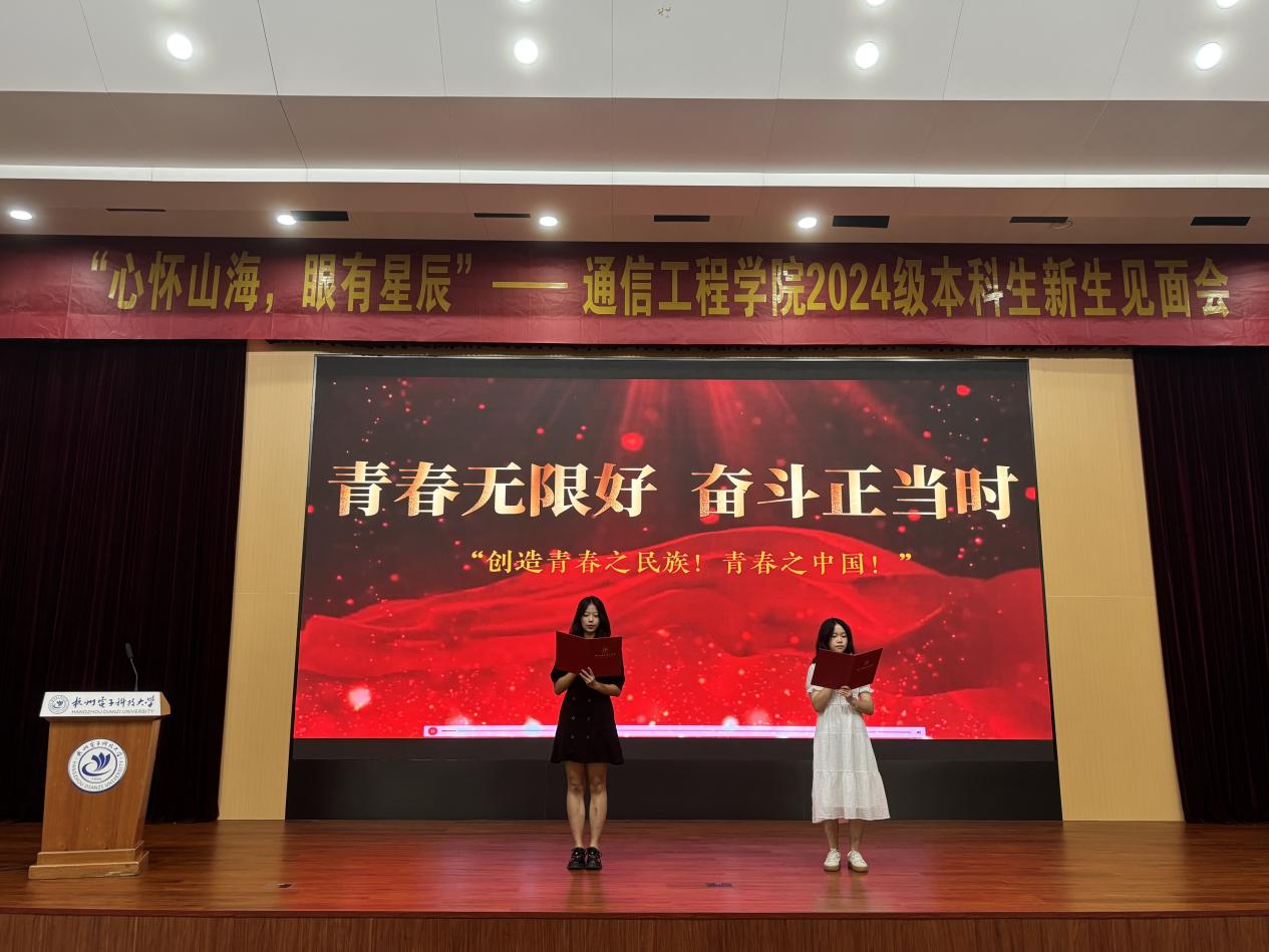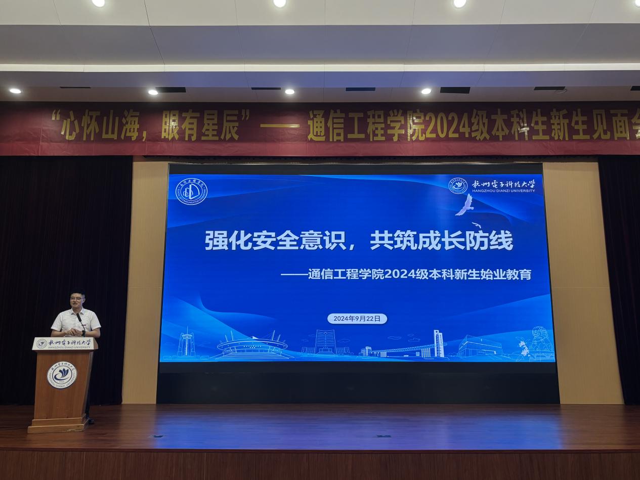 通信工程学院2024级本科新生见面会暨始业教育在全体新生学唱校歌的歌声中圆满结束。新的蓝图已经绘就,新的征程即将开启,期待2024级的杭电通信学子带着憧憬与热情,在大学的广袤天地中阔步向前!