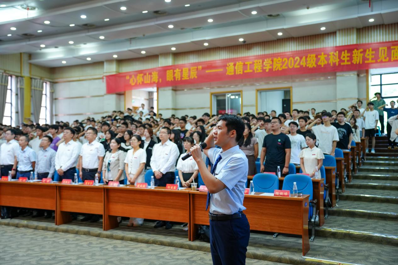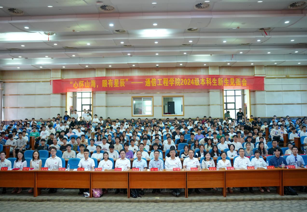 回首奋进路,踏上新征程。2024年9月22日,通信工程学院2024级本科新生见面会在科技馆报告厅隆重举行。学院党委书记何宏、副院长(主持工作)胡淼、党委副书记陈新峰、副院长孙闽红、本科教学工作负责人刘春山、学术副院长江绍玮、专业教师代表何美霖、学院各职能部门负责人、学院优秀校友代表、学生会主席、2024级本科新生班主任、2024级本科新生辅导员、2024级本科新生助理辅导员及2024级全体本科新生共同参与。会议由学院党委副书记陈新峰主持。