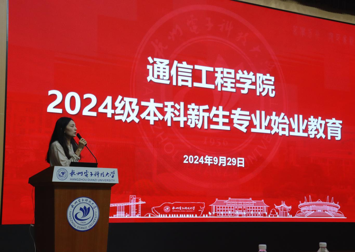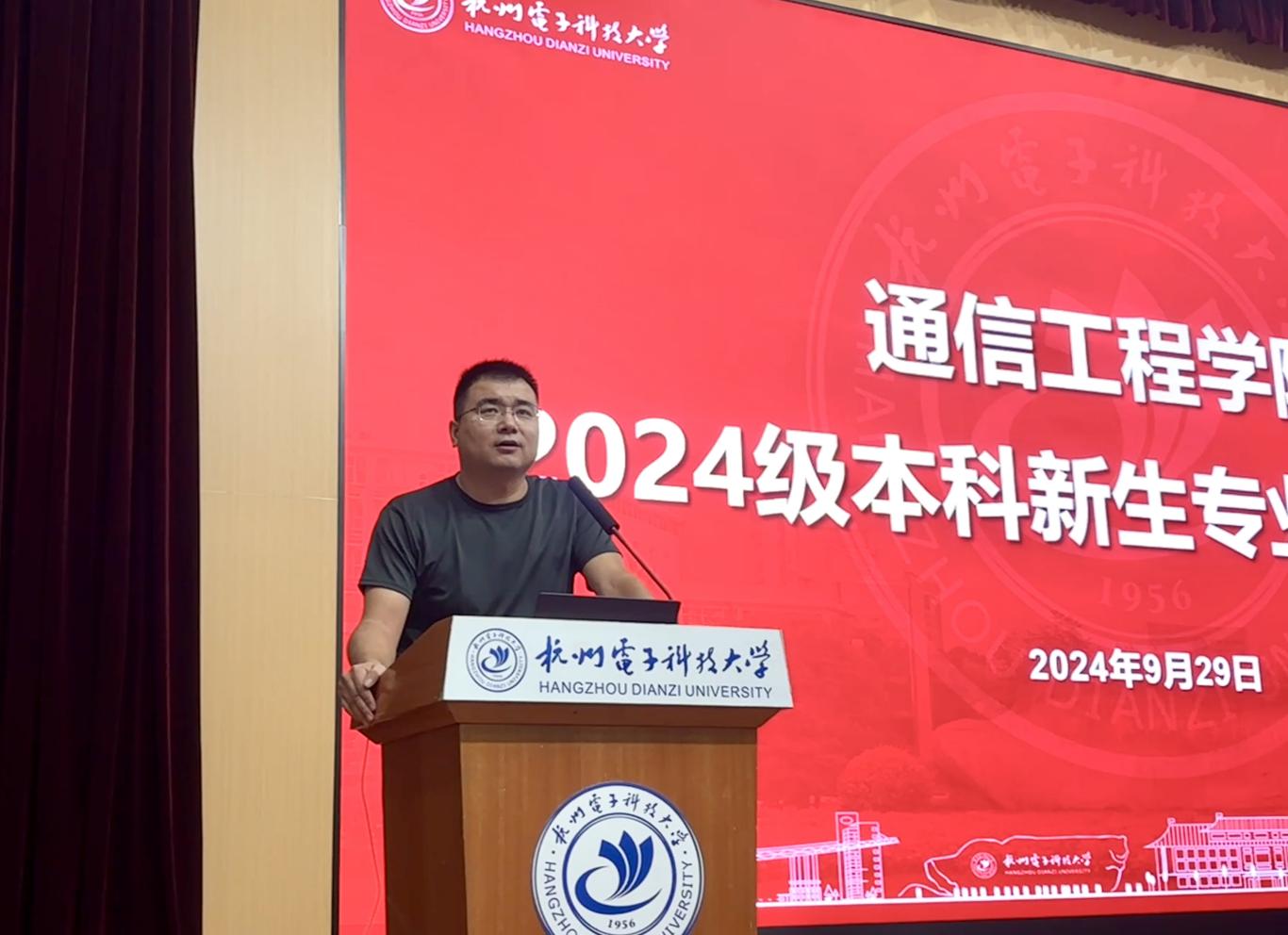 在金秋送爽,丹桂飘香的季节,通信工程学院迎来了一群满怀憧憬与期待的新生力量。为助力新生们顺利踏上专业学习的征程,洞悉通信奥秘,9月29日晚,通信工程学院2024级本科新生专业始业教育在科技馆报告厅顺利举行。学院学科负责人刘春山、专业教师代表刘二小、教科办主任虞成磊、教学秘书胡绎茜、2024级本科新生辅导员出席会议。本次会议由2024级本科新生辅导员代表成田主持。