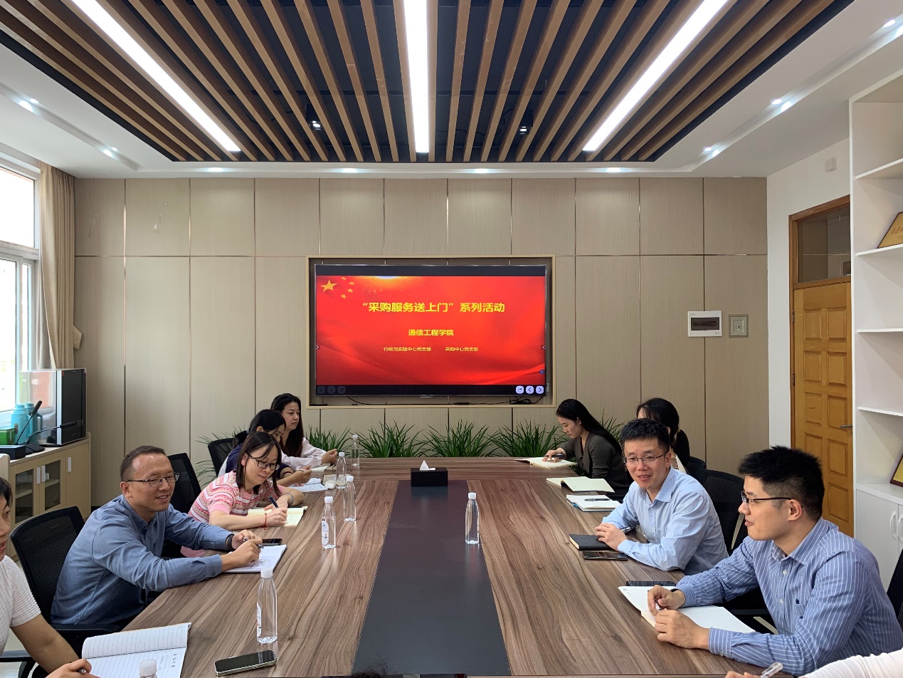 10月11日下午,学校采购中心党支部在支部书记邵渊韬的带领下,一行人来到通信工程学院“党员之家”,开展“采购服务送上门”活动。学院党委书记何宏、各学科团队秘书、行政与实验中心党支部书记王琛及支部成员参加座谈交流。